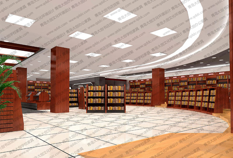山东省龙口市新华书店 营业面积3500平方 整体室外/室内装潢设计/整体书架设计、制作、安装。