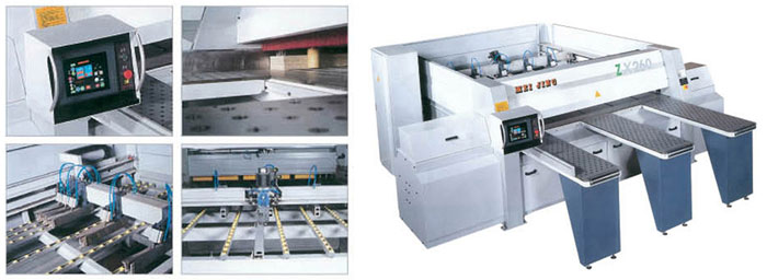 选用意大利ZX320重型电据数控开料裁板机,机械手自动送料/电脑自动定位/前置送料架上有气动浮珠,减少板材划伤。此设备由由大小两锯片组合工作,下料后料件精度高,无毛刺,切面光滑平整, 加强实木收口的牢固性。